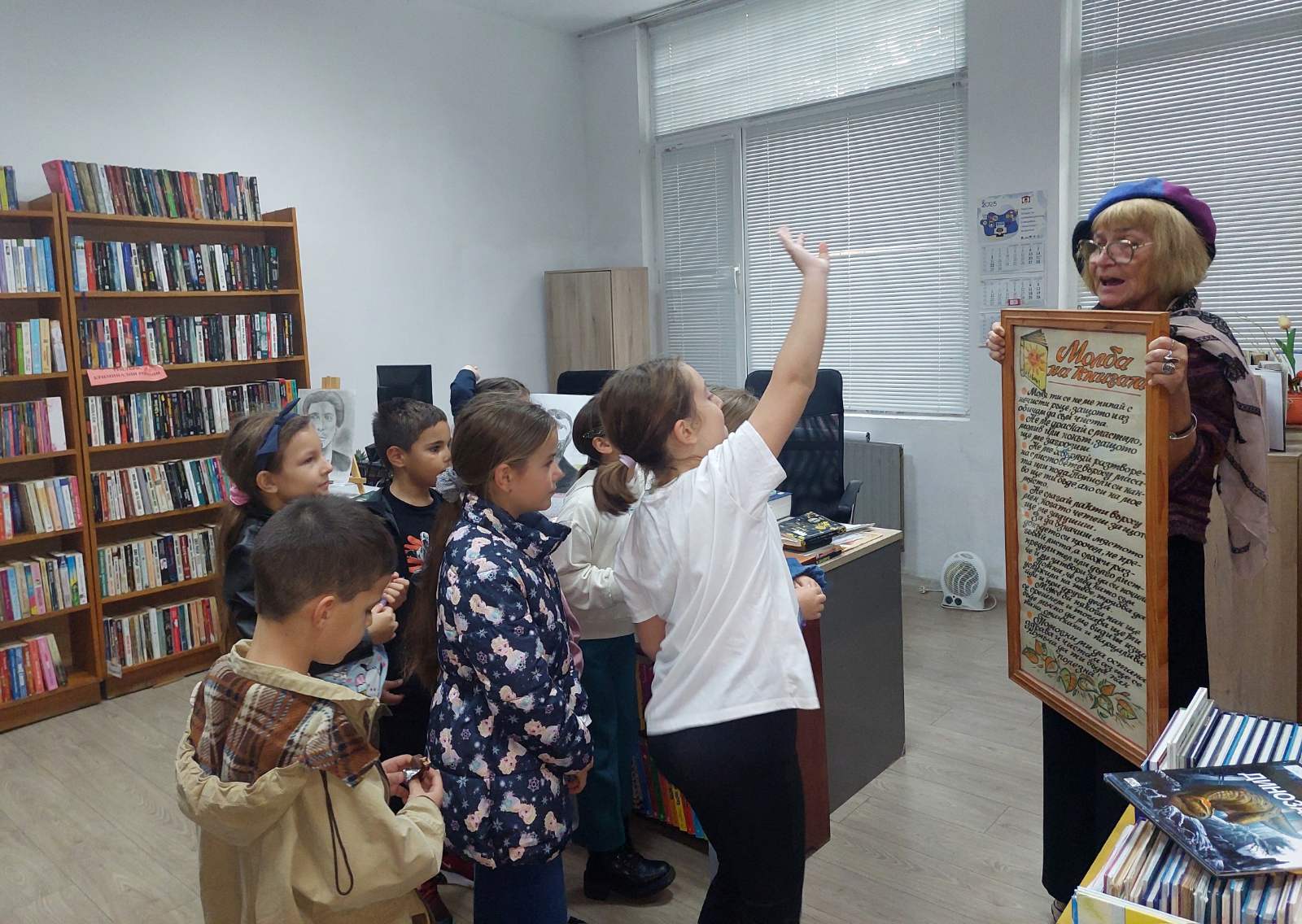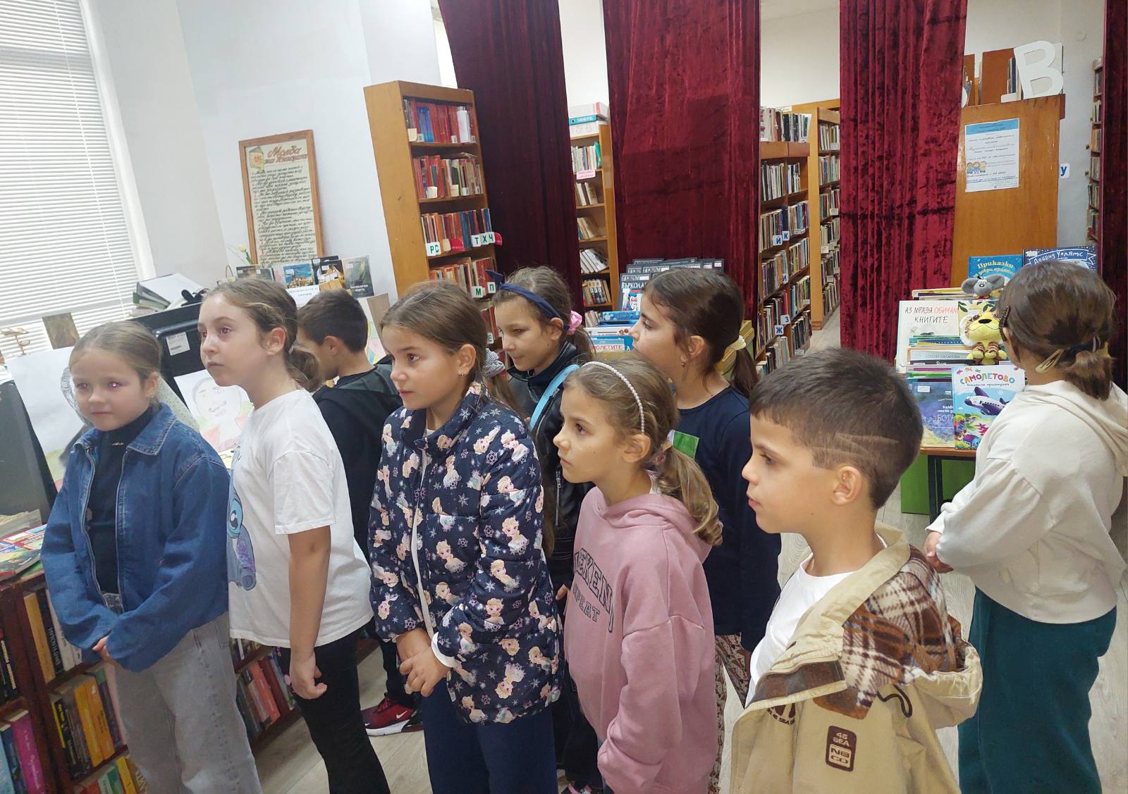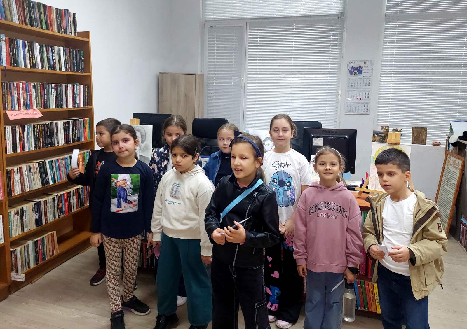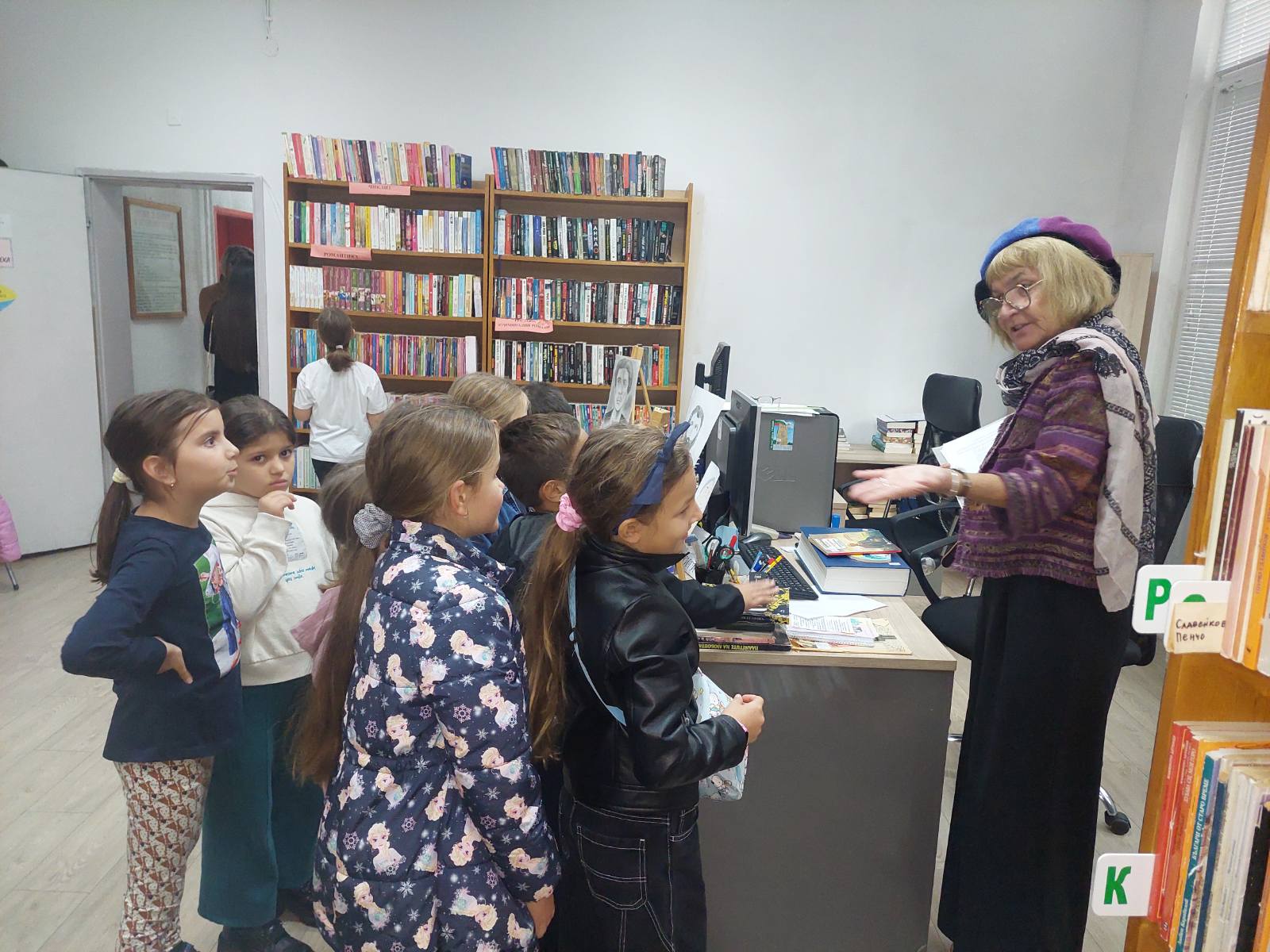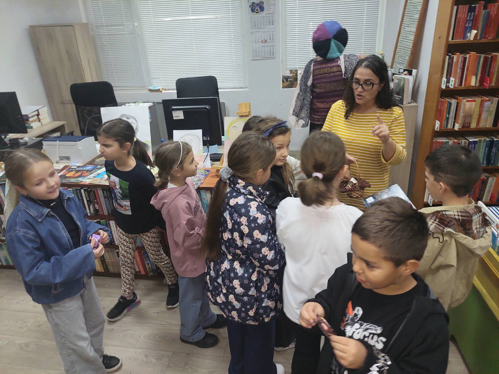 „В навечерието на Деня на народните будители и във връзка с инициативата „Приказна нощ в библиотеката“ ученици от 2. а клас и техният учител Събина Георгиева посетиха читалище „Пенчо Славейков 1983″. Децата бяха посрещнати от читалищните служители Светлана Милчева и Весела Карагьозова, от които научиха интересни факти за дейността на библиотеката. Участваха във викторина за книгите и беседа за народните будители, където демонстрираха много знания и богата обща култура. Имаха възможност да разлистват и подреждат книгите, да разгледат ателието по грънчарство, да се запознаят с учителите по пиано и китара. На сбогуване хапнаха бонбони и обещаха да посетят отново читалището.“