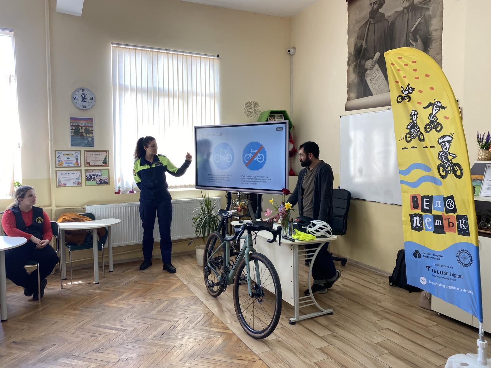 Ппетокласниците от ОУ „Любен Каравелов“ се запознаха с безопасното и отговорно придвижване с велосипед, за да знаят как да го използват в града. Децата научиха защо е важно да се кара колело, как да си подготвят велосипеда, каква екипировка трябва да имат, кои са пътните знаци, които трябва да познават и как карането на велосипед е от полза за природата.